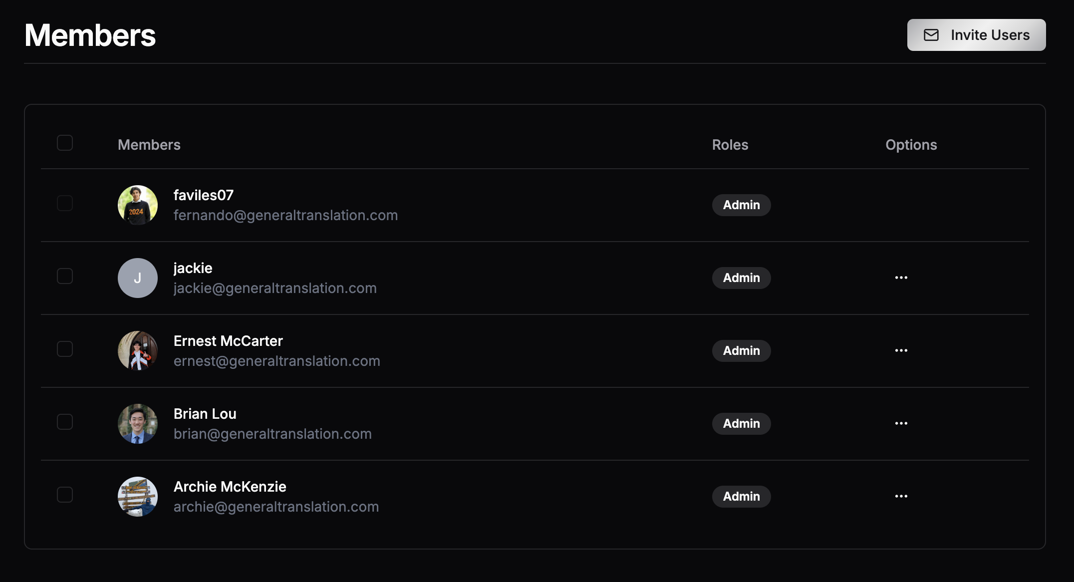 The Members page shows everyone with access to your organization.